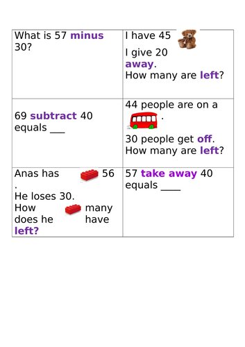 Beat the monotony of subtracting numbers and comprehend real-life application with a multitude of word problems. Tes Global Ltd is registered in England. Share to google.