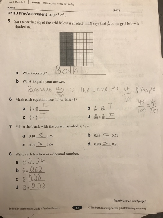 Do you agree with him. Session 1 class set plus 1 copy for display Unit 5 PreAssessment page 2 of 3 Answer Key 18 112 122 61 or 35 Work will vary. Mathematics K-12 Math Home.